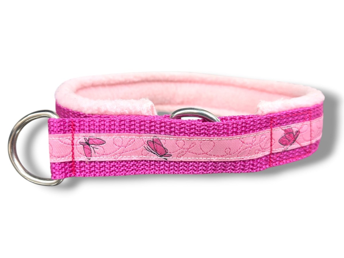 Verspieltes Design: Halsband mit Schmetterlings-Motiv. Verleihen Sie Ihrem Hund einen charmanten Look mit diesem liebevoll gestalteten Halsband in leuchtendem Pink und Rosa. Die feine Borte mit Schmetterlings-Stickerei macht es zu einem echten Blickfang bei jedem Spaziergang.